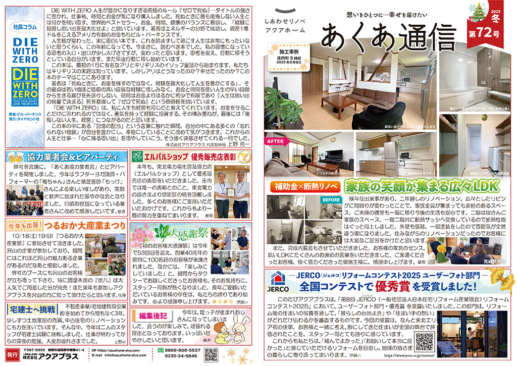 最新の「あくあ通信」はこちら。(2025年11月発行)