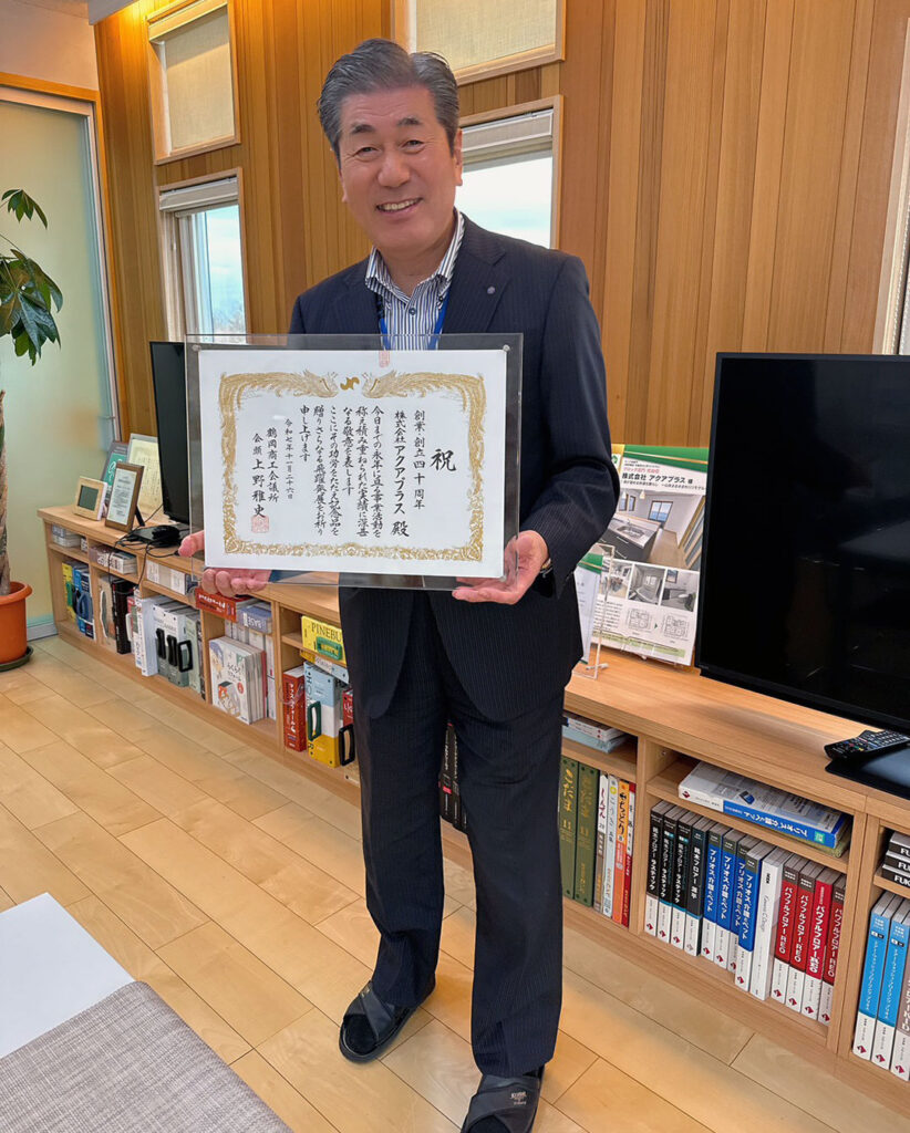11月27日、東京第一ホテル鶴岡で開催された「鶴岡商工会議所 創業・創立記念 会員事業所顕彰式」にて、アクアプラスは、創業40周年の表彰を頂きました。