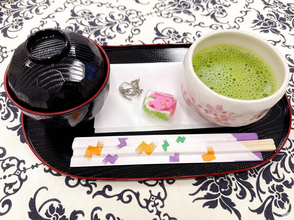 新春イベントということで、今回はぜんざいとお抹茶、京菓子をご用意し、来場された皆さまに振る舞わせていただきました。