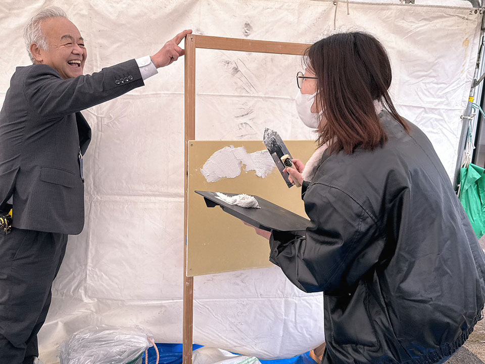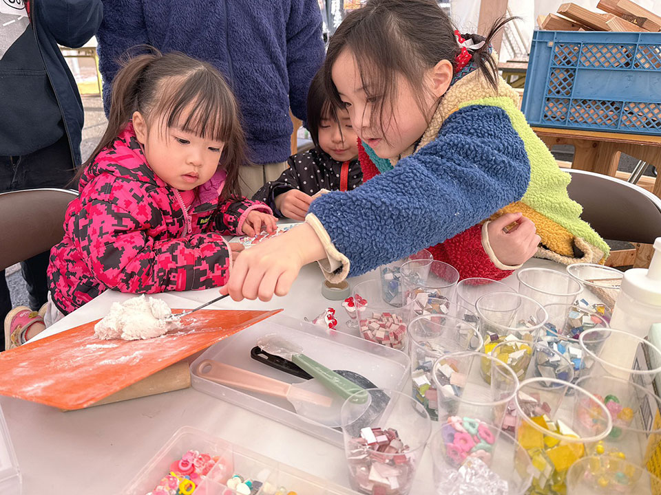 珪藻土を使ったタイルアートや食品サンプルづくりは、社屋2階で実施しました。