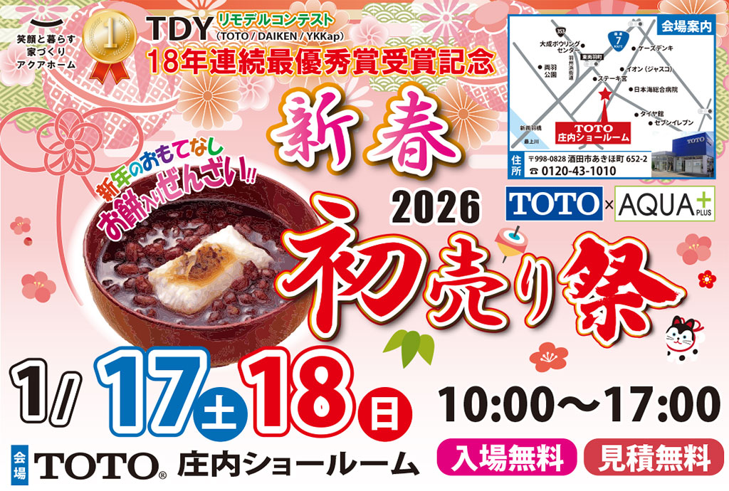 令和8年も、TOTO庄内ショールーム(酒田市あきほ町)にて皆さまをお迎えします。