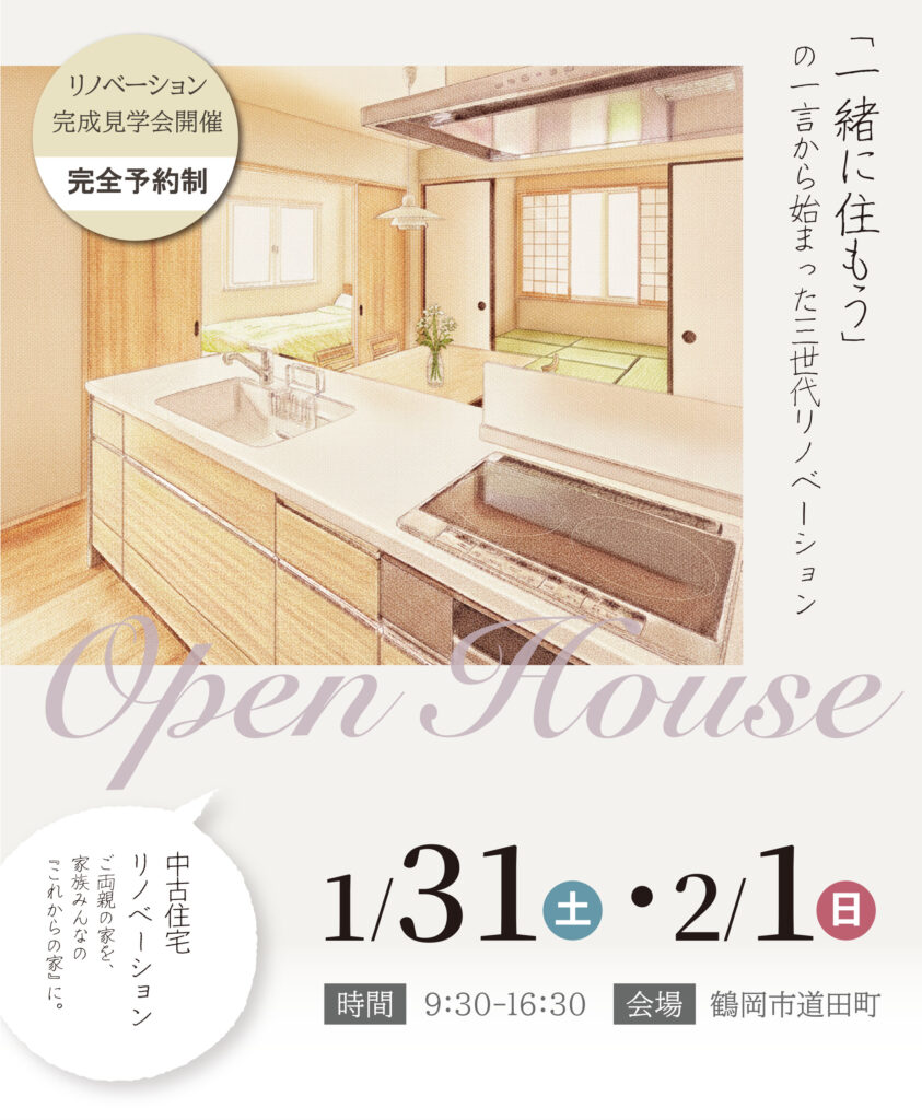 「住み慣れたお家が生まれ変わる」 そんな感動を形にした、三世代が心地よく暮らすリノベーション住宅の完成見学会を開催いたします 。
