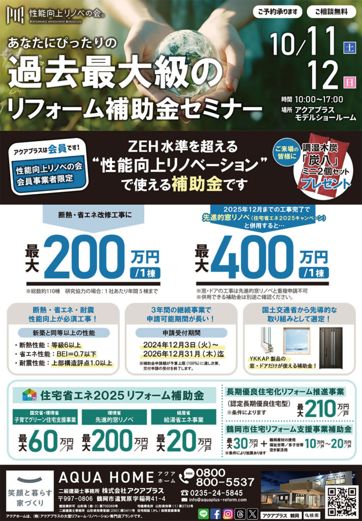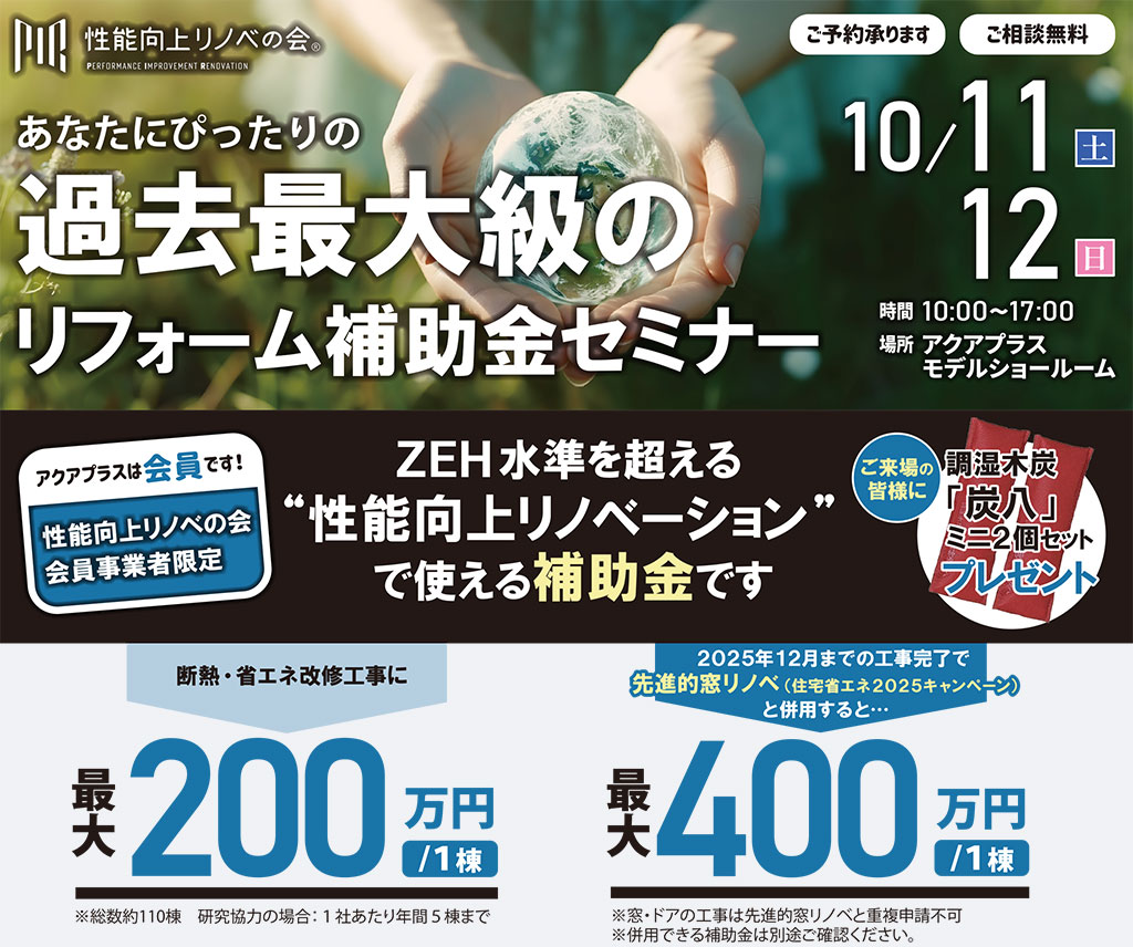 【10/11㊏12㊐】過去最大級のリフォーム補助金セミナー