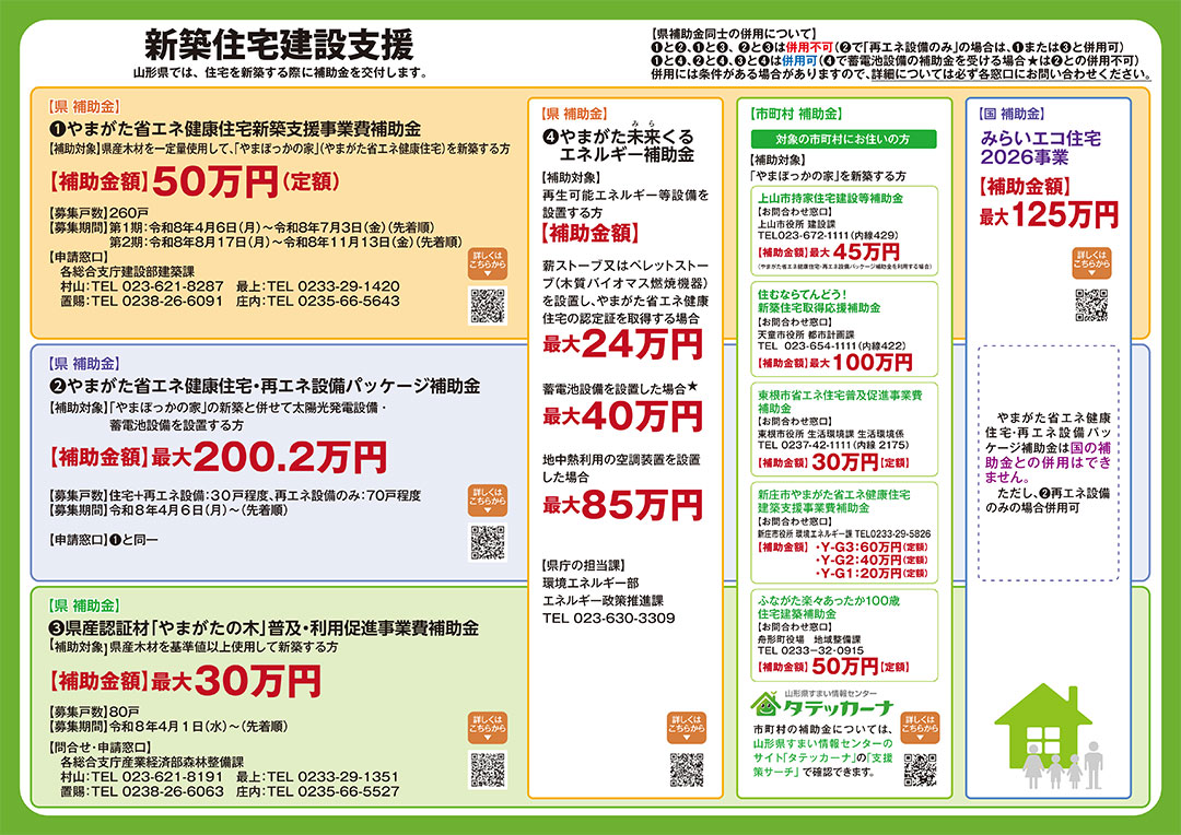 ※新築支援等は、山形県住宅情報総合サイト「タテッカーナ」をご参照ください。